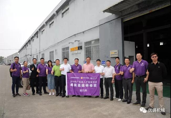 On the morning of October 24, 2018, members of the Guangdong business advanced seminar and their delegation, accompanied by Hong Haokun, chairman of Youzhu company (Figure 1: No. 8 on the left), and Hong Zehong, executive vice president (Figure 1: No. 3 on the left), visited and studied Youzhu No. 1 production base and No. 2 production base.