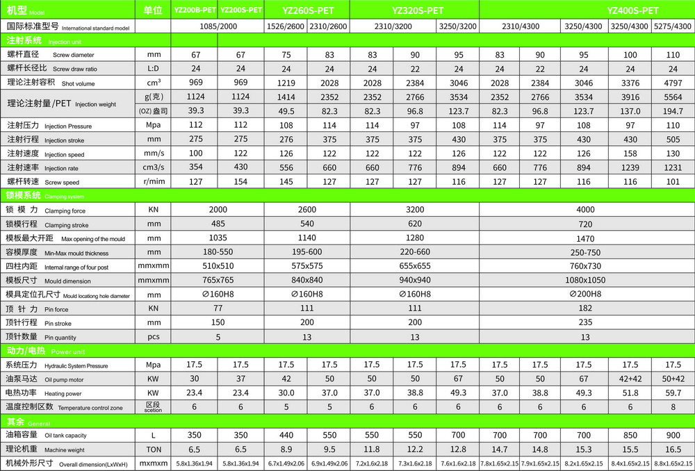 PET Injection Molding Machine Parameter (for Beverages Preform, Water & Oil Preform)